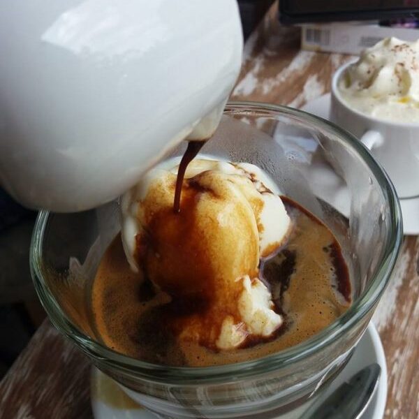 Setelah espresso siap, tuangkan secara perlahan di atas es krim vanila. Biarkan cairan panas itu menciptakan lapisan yang lembut dan menyatu dengan es krim. Anda bisa menambahkan topping sesuai selera seperti cokelat serut atau kacang cincang.